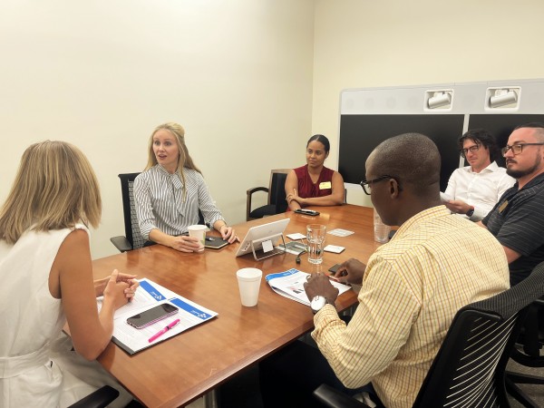 The class relocated to the Dart offices in Camana Bay or for dinner, followed by the evening’s seminar. Guest speakers included L Lauren Dombowsky Chartered Environmentalist and Manager of the Environmental Management Unit at the Department of Environment, Cayman Islands Government; Anna Russell-Knee, an experienced planning and environmental lawyer; and Richard McAree, Dart’s Environmental Social Governance Programme Manager who is on the project delivery team for the Integrated Solid Waste Management System at the George Town Landfill.